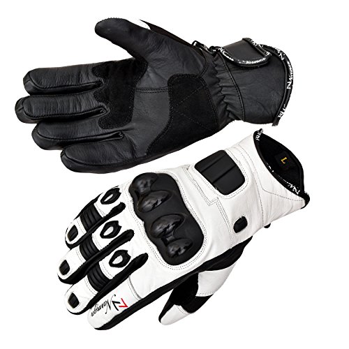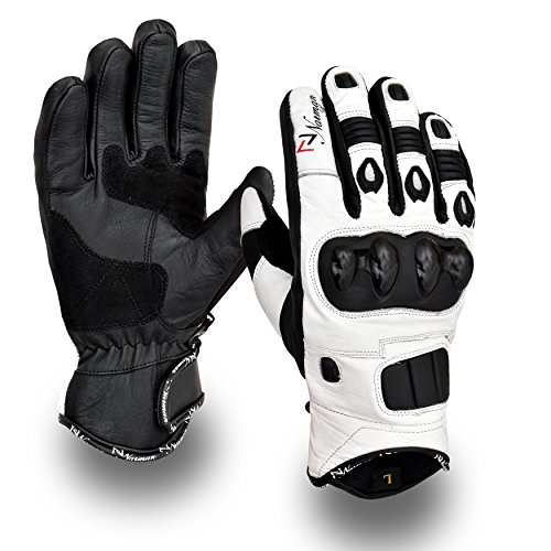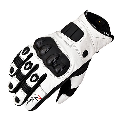 White Short Leather Knuckle Protection Motorbike Motorcycle Gloves Summer