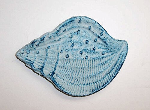 -. Feature : Unique cast iron clam sea shell - Derocative counter top soap dish - Also use in room in the house kitchen, dinning, bedroom and more / Soap dish is made of durable heavy cast iron - With a unque vintage design. - Shabby chic light blue - Rubbed with P.R.Imitive blue / Can be used as a soap dish, tooth pick holder, paper clip holder, Mantel decorations, paper weight, business cards and so on - Use home, log cabin, lake side house, bunglow, office and more / Sea shell soap dish size is: 5-1/2 inches long X 4 inch wide .- Not good for cooking or baking - New, never been used / Note: To see similar discounted cast iron hooks +++ Search on Amazon: ABC Products Cast Iron
