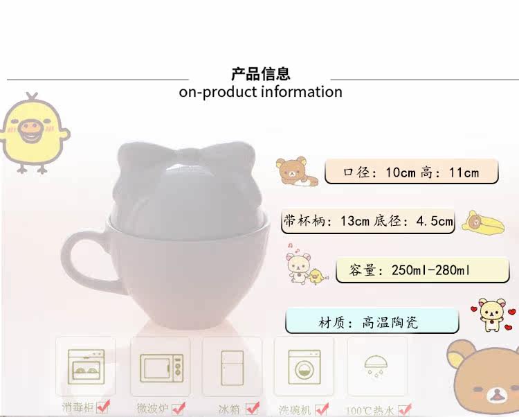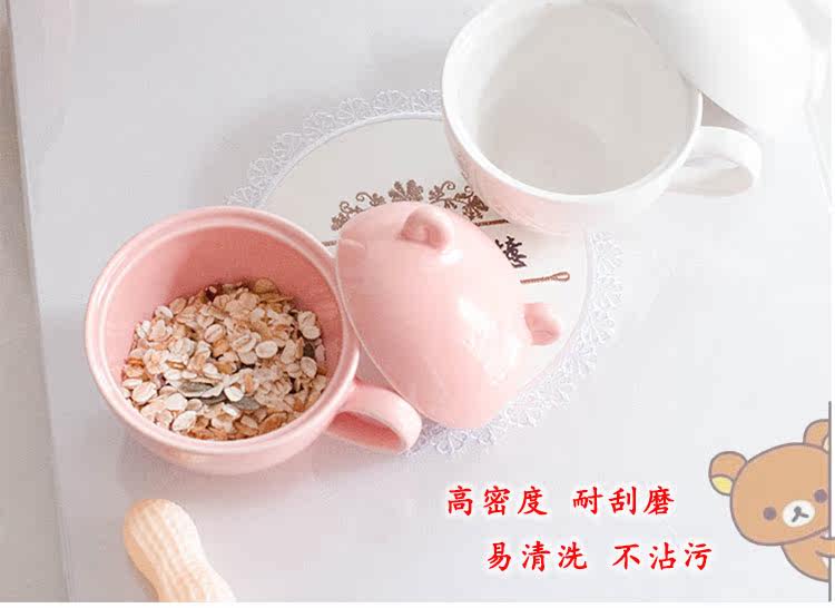 陶瓷带盖情侣杯办公室创意马克杯超萌牛奶燕麦早餐杯子