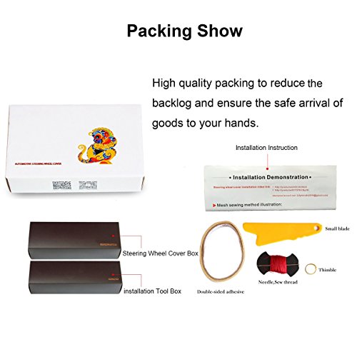 Note: Customers need to sew the leather cover over your current original cover or rubber steering wheel.We offer the complete installation tools and paper instruction as well as the YouTube link.Once finishing,it looks like an custom OEM leather steering wheel cover.Give it a try now!