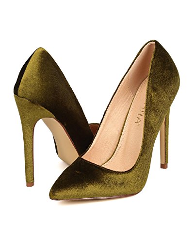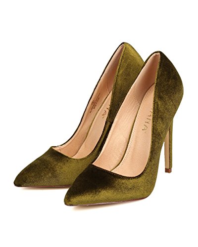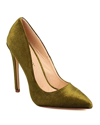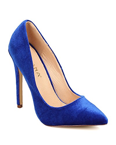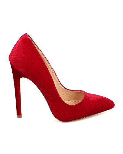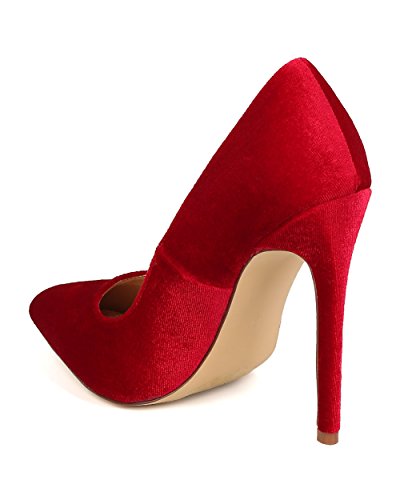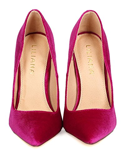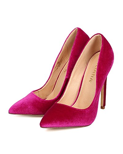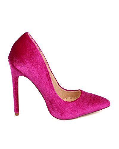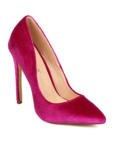 Liliana FB60 Women Velvet Pointy Toe Single Sole Stiletto Pump