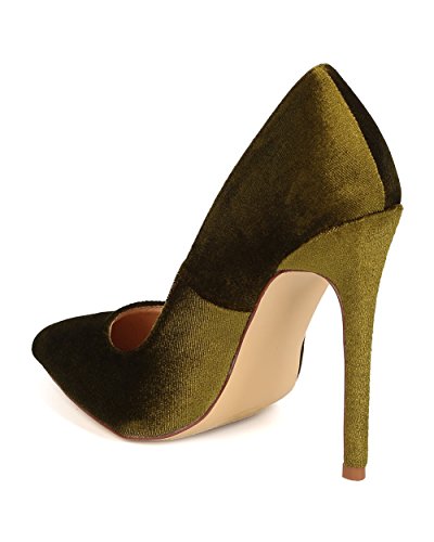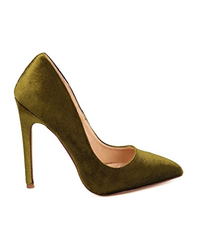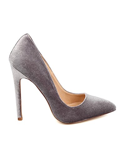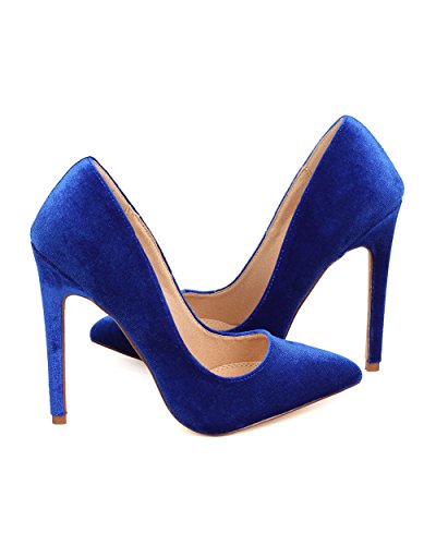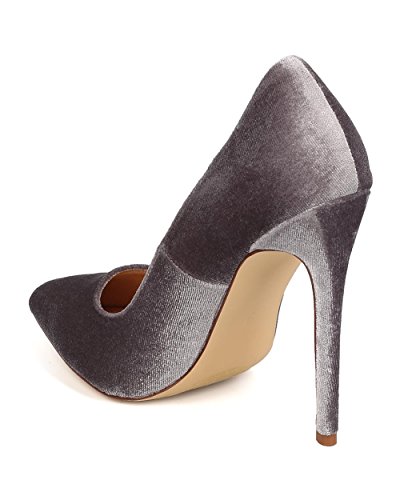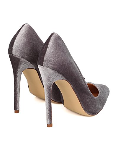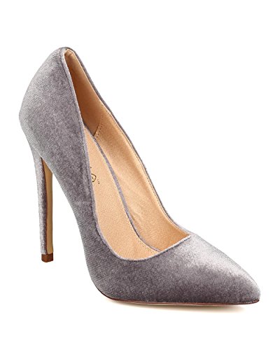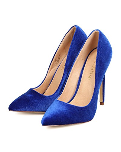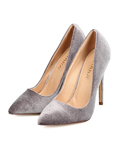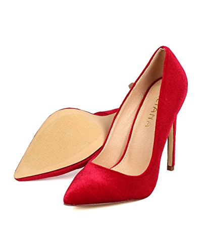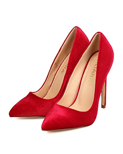 Product DescriptionDesigned with velvet upper, pointy toe, scooped vamp, single sole, covered stiletto heel, and easy to slip on design.0