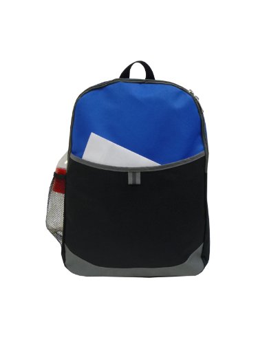 -. Binding : Misc. -. Brand : Bags For Less -. Color : Royal -. Department : unisex-adult -. EAN : 0799475256578 -. Feature : Open front pocket with velcro closure / Double zipper puller, Side mesh pocket for water bottle / Adjustable shoulder straps / 12" W x 16" H x 5.25" D / 600 Denier Nylon -. IsAutographed : 0 -. IsMemorabilia : 0 -. Label : Budget Bags Inc -. Manufacturer : Budget Bags Inc -. ProductGroup : Sports -. ProductTypeName : SPORTING_GOODS -. Publisher : Budget Bags Inc -. Size : 12" W x 16" H x 5.25" D -. Studio : Budget Bags Inc -. Title : Bags for LessTM Designer Backpack with Front Pocket, Royal -. UPC : 799475256578
