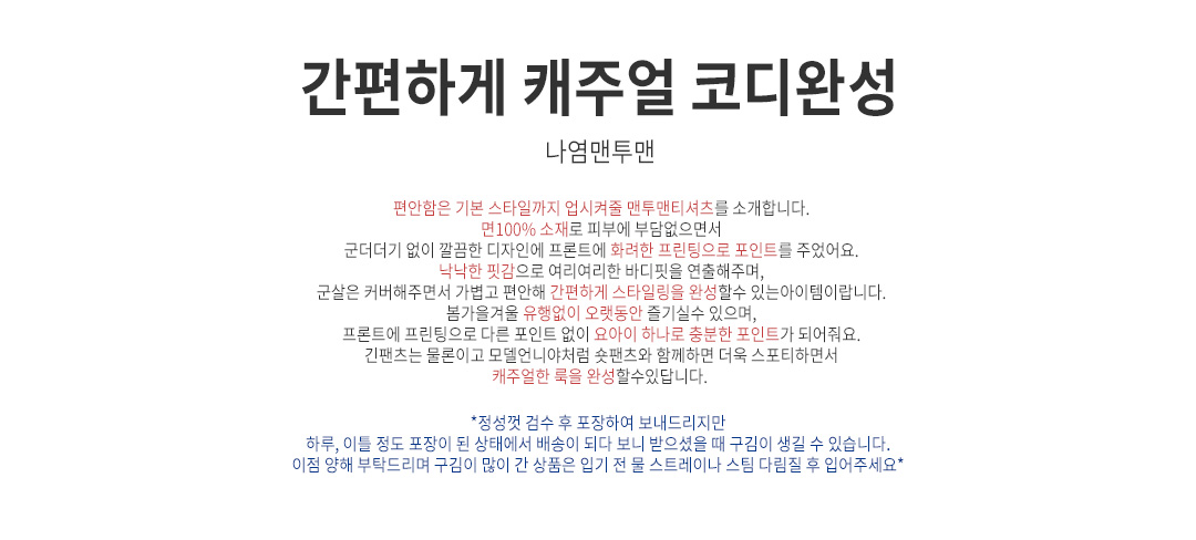 .같은 사이즈라도 체형에 따라 핏감이 조금씩 다를 수 있습니다.