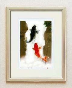 中国の古事にこのようにあることから古くより風水では鯉の滝のぼりの絵は、『立身出世』・『家運隆昌』・『金運向上』の象徽として額に入れて飾ると良いとされています。特に玄関に飾ると良いと云われています。