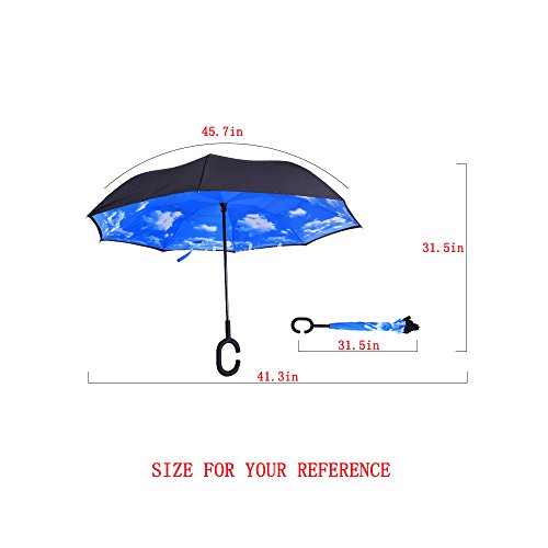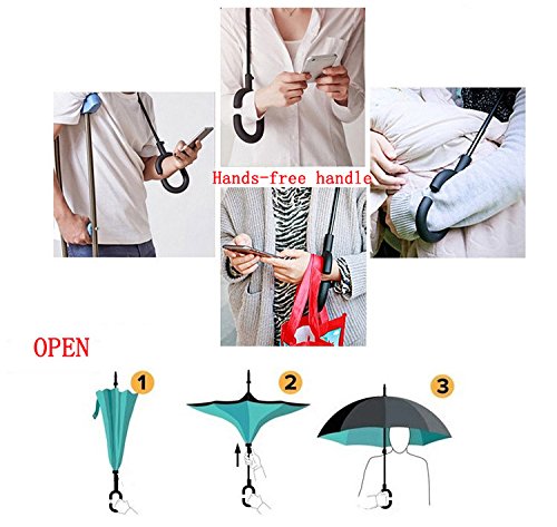 -. Binding : Misc. -. Feature : UNIQUE DESIGN Double Layer Inverted Umbrella, when open from outside to inside; when close form inside to outside, so you won't get wet no matter get in or out of the car. And won't wet your floor, for the wet side is inside. / A AMALL CHANGE IS A BIG DIFFERENCE Reverse Umbrella has a hands-free umbrella handle when you are uncomfortable when holding an umbrella, such as the need to hold the child in the rain.Manual open and closed. / MATERIAL Use the International Leading Technology: Nano waterproof technology, the waterproof effect is three times as common umbrella. / Opens/Closes in Confined Spaces. Getting into your car, you can close the Umbrella nto the smallest gap of a car door, whilst remaining dry. Now you can even put the Umbrella n your car seat without soaking it / CRAETIVE GIFTS for your Parents、Friends、Wife.DIMENSIONS Refer to Figure. It's large enough to shelter both you and your loved one from the downpour. -. IsAutographed : 0 -. IsMemorabilia : 0 -. Label : ASSIS -. Manufacturer : ASSIS -. PackageQuantity : 1 -. ProductGroup : Sports -. ProductTypeName : SPORTING_GOODS -. Publisher : ASSIS -. Studio : ASSIS -. Title : ASSIS Double Layer Strong Waterproof/Uv protection Reverse Umbrella Creative Cars Reverse Umbrella Straight Waterproof Inside Out Compact Travel Umbrella for Car