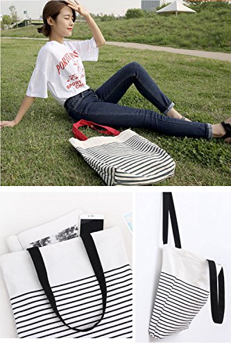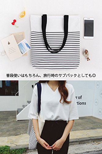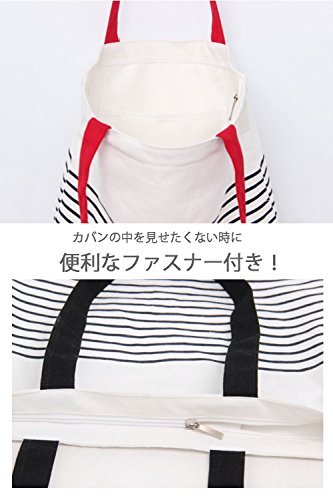 -. Title : (POMAIKAI) キャンバス トートバッグ ショルダー 大容量 ファスナー 付き ボーダー