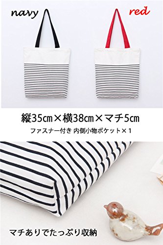 -. Feature : シンプルなキャンバス地のボーダーバッグ カジュアルな服装の時にこのバッグでワンポイント。オシャレ度がグッとアップ。通勤・通学や普段使いに最適。 / スーパーなど買い物で使うエコバックや旅行時のサブバッグとしても活躍します! 軽量で折り畳んでもシワになりにくいのでセカンドバックとして利用するのも○ / 使い勝手を考えたファスナーを搭載。バックの中身が見えずに安心。 内ポケットもついているので、携帯やペン・鍵などの小物を入れるのに重宝します。 / ◆SPEC(スペック) 35㎝×38㎝×5㎝(マチ) ファスナー付き 内側小物ポケット×1 / ◆COLOR(カラー) ネイビー・レッド