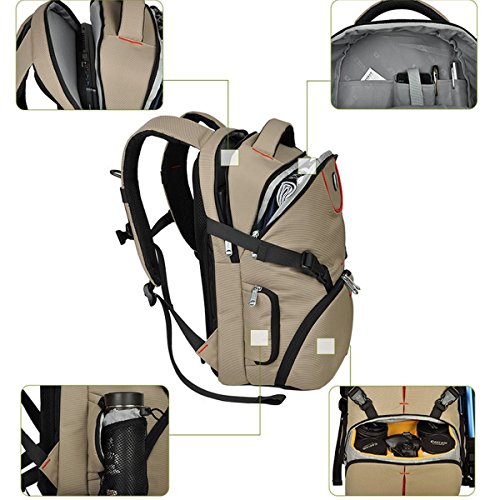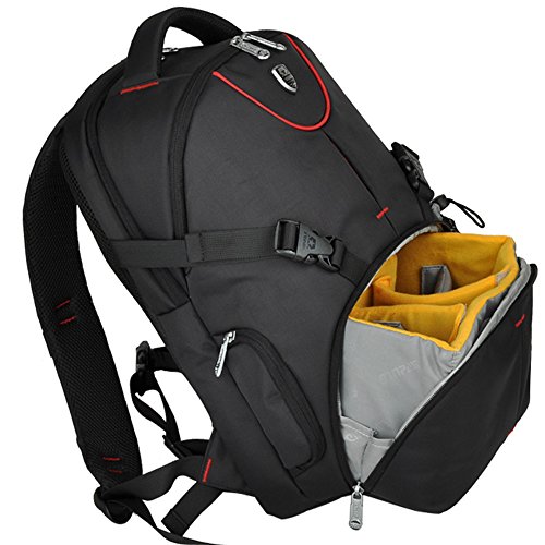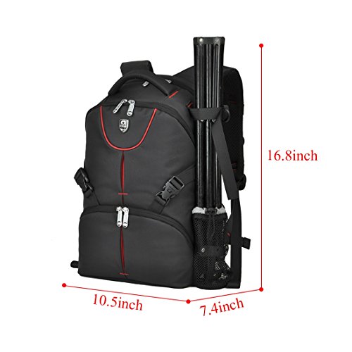 -. Binding : Electronics -. Brand : BAIGIO -. Department : mens -. Feature : Rucksack materials - oxford fabric; 10.5" l x7.4" w x16.8" h -. PackageQuantity : 1 -. ProductGroup : CE -. ProductTypeName : CAMERA_BAGS_AND_CASES -. Title : Backpack for SLR/DSLR Digital Nikon/ Canon Camera and Accessories