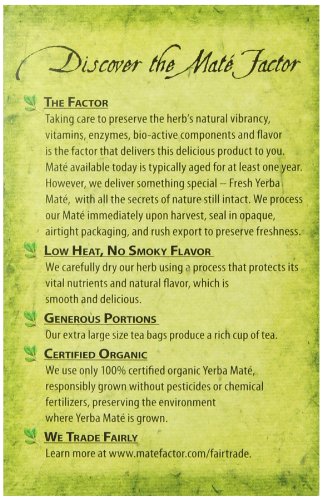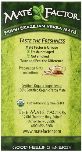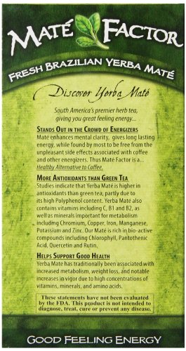 The Mate Factor Yerba Mate Energizing Herb Tea Bag, Organic Fresh Green, 24-Count Box
