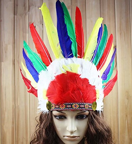 -. Feature : Feather material production / Size: single feather length 20CM or so, the total head height 34CM,The bottom width of 27CM or so / Halloween Indian feather mask Indian savage feather headdress / Usually 8-16 days delivery to USA / Suitable for:Perfect for Masquerade Parties, Gifts, Costume Parties, Carnival, Christmas, Easter, New Years Eve Party, Halloween, etc.