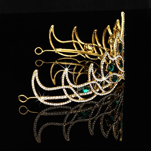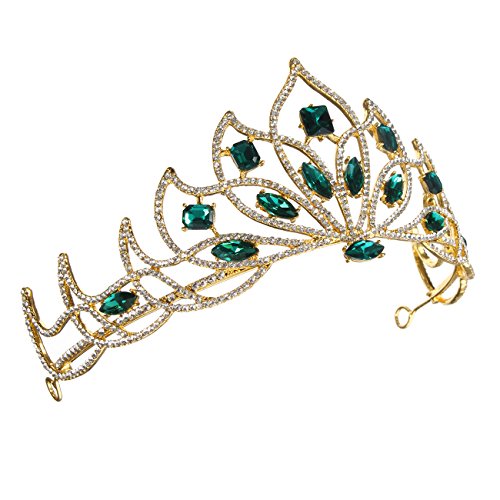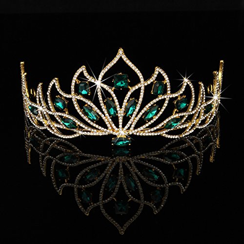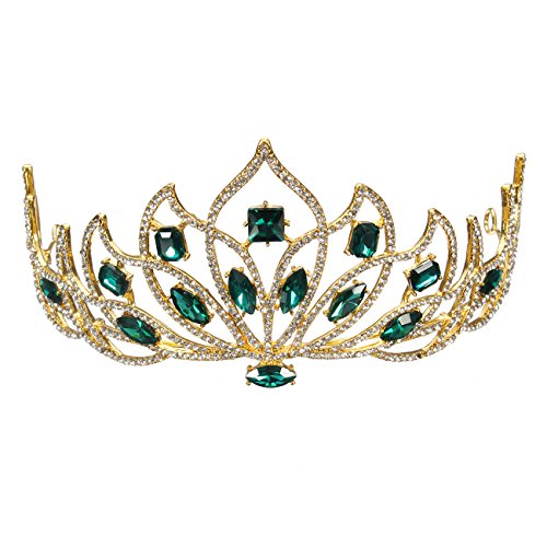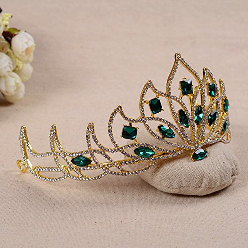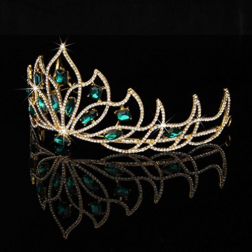 Bride Gold Green Rhinestone Crystal Tiara Crown Princess Queen Wedding Bridal Party Headpiece