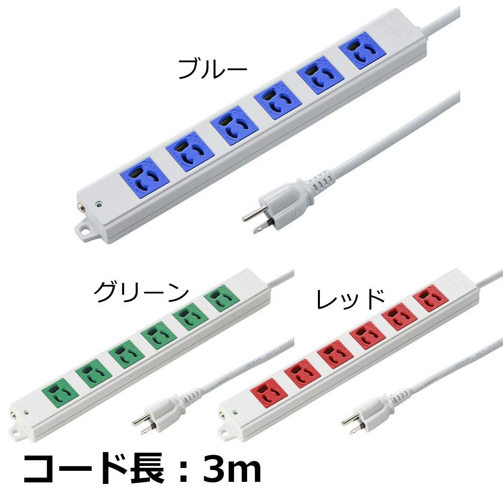 色分けすることで電源管理がしやすくなる抜け止め電源タップ。