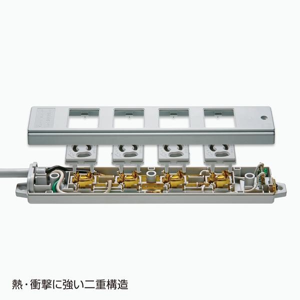 3P抜け止め、トラッキング火災予防機能付き、3Pプラグ仕様の6個口タップです。裏面にマグネットが付いているので、スチールのデスクなどに仮固定することができます。 製造国:日本 ※サプライヤー直送品 ご注文後3~4営業日後の出荷となります【商品名】サンワサプライ 工事物件電源管理タップ 抜け止めコンセント 3P 6個口 3m グリーン・TAP-K6-3G