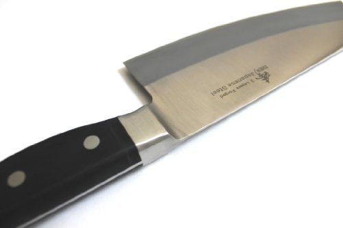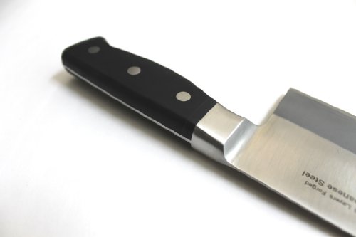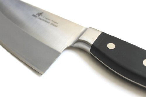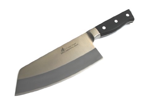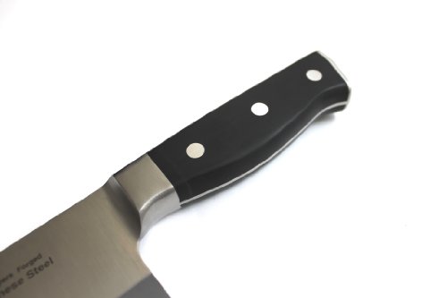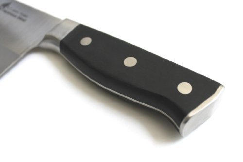 -. Feature : MADE WITH JAPANESE TOP GRADE STEEL ; 3 Layers forged; VG-10 Japanese stainless steel cutting core; HRC 60-62 hardness / Blade Length x Width x Thickness: 7" x 3" x 1.8 mm; 0.75 LBS / Frost surface finish design to prevent food from sticking to knife body / Full tang design with durable sealed tight classic POM handle to prevent slip and create comfortable holding / Long-lasting sharp edge designed for chopping meats; vegetables; and fruit, GOOD to Chop chicken bones