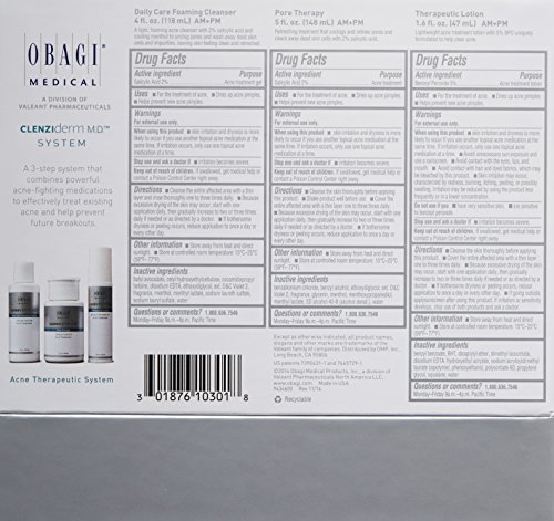 Clenziderm MD Acne Therapeutic System Kit Includes: Pore Therapy 5fl oz, Therapeutic Lotion 1.6 fluid oz, Daily Care Foaming Cleanser 4 fluid oz)