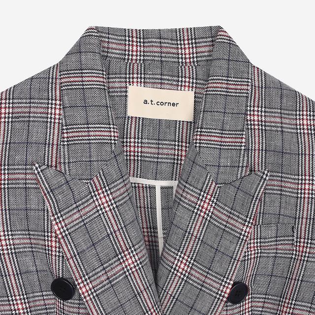 네이비 컬러에 배색의 컬러감과 글랜체크 패턴으로 포인트를 준 자켓 입니다. 쓰리 버튼장식으로 클래식함이 돋보이는 아이템 입니다.