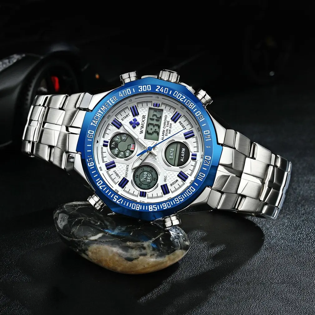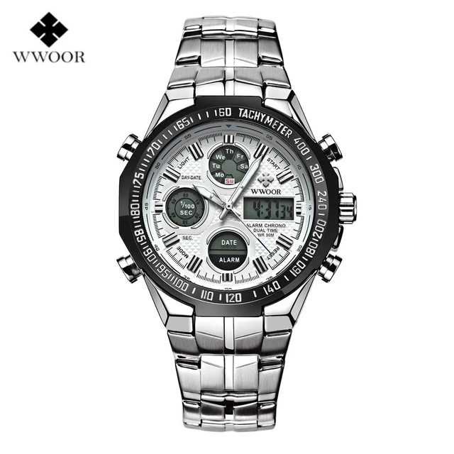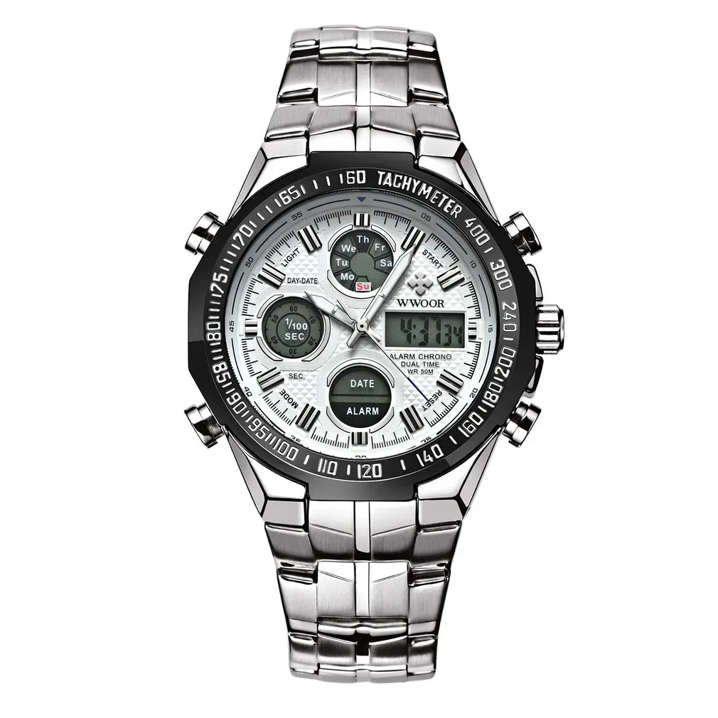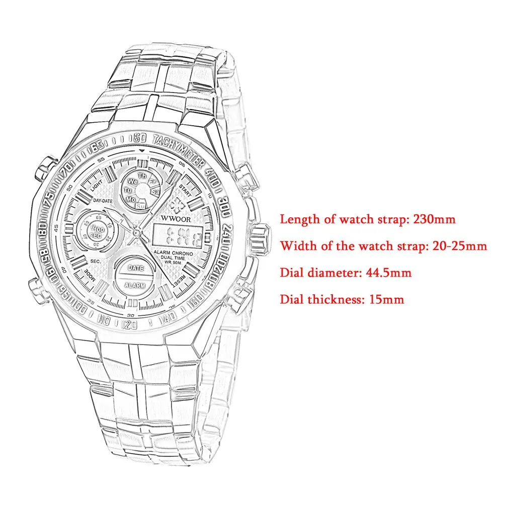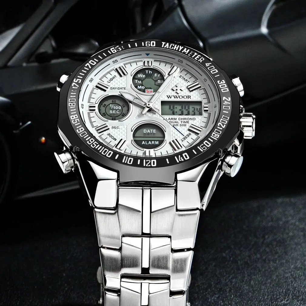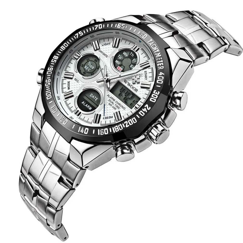 | [해외] WWOOR 남성 듀얼 디스플레이 디지털 석영 아날로그 시계 남성 육군 군사 스틸 손목 시계 Relogio Masculino |