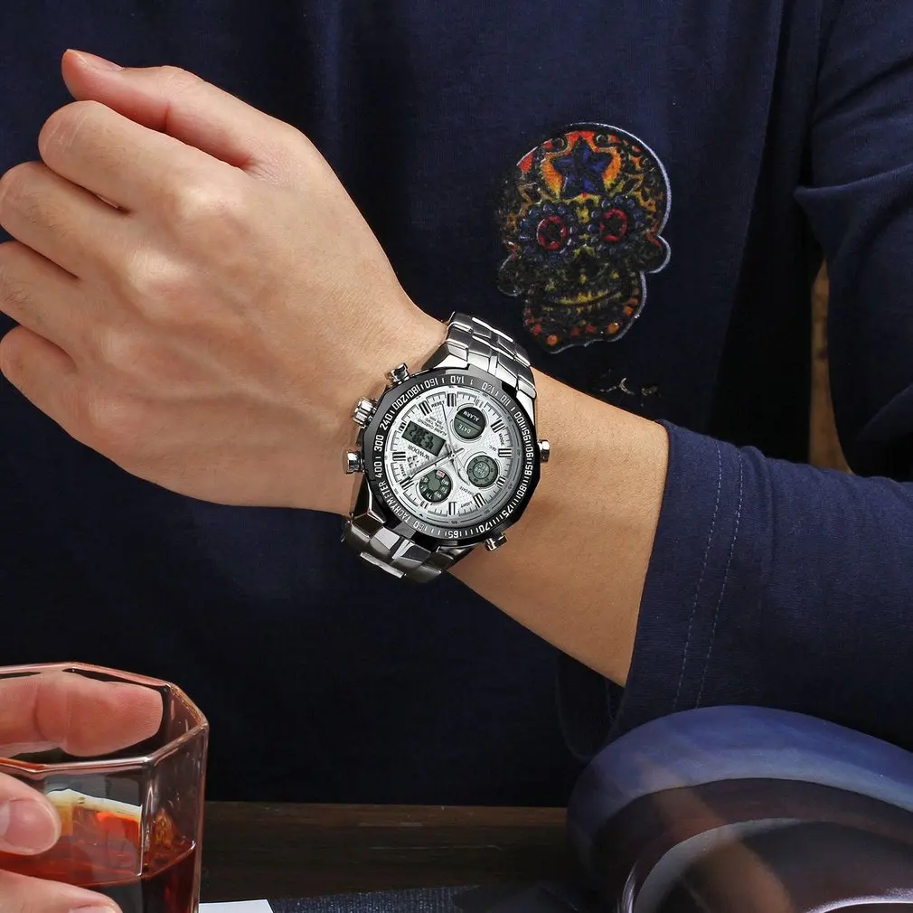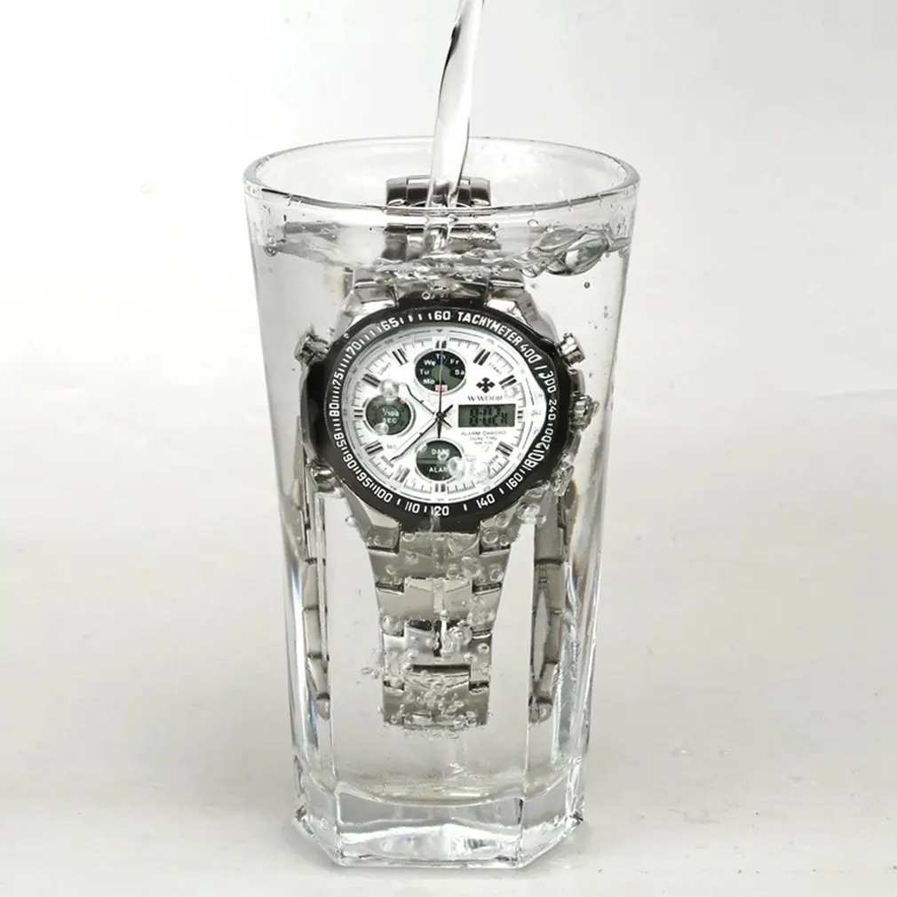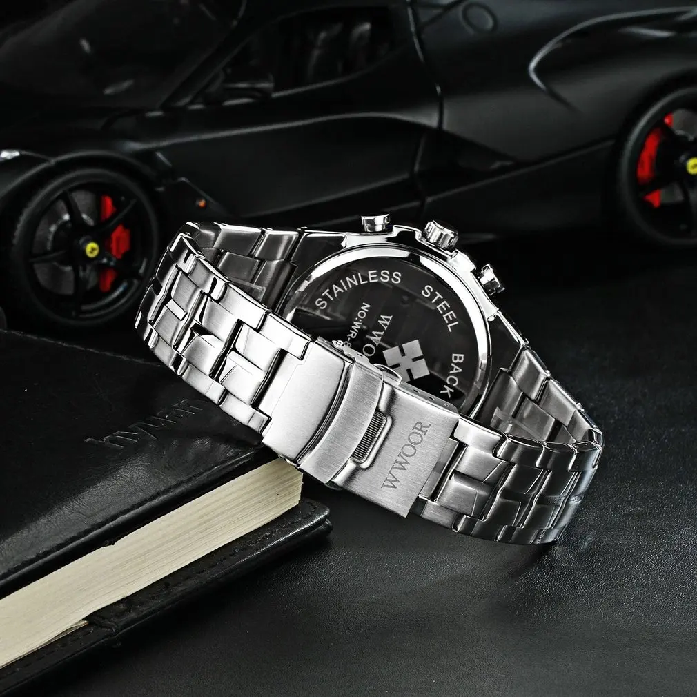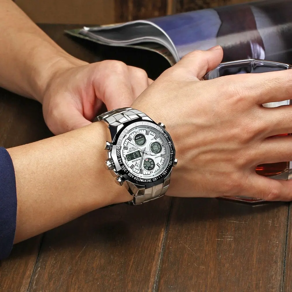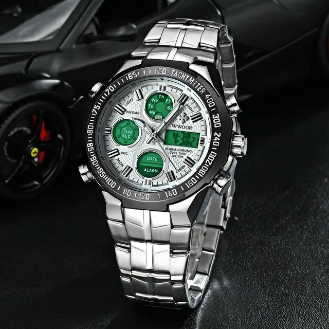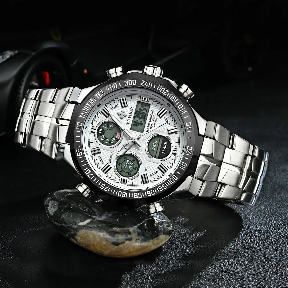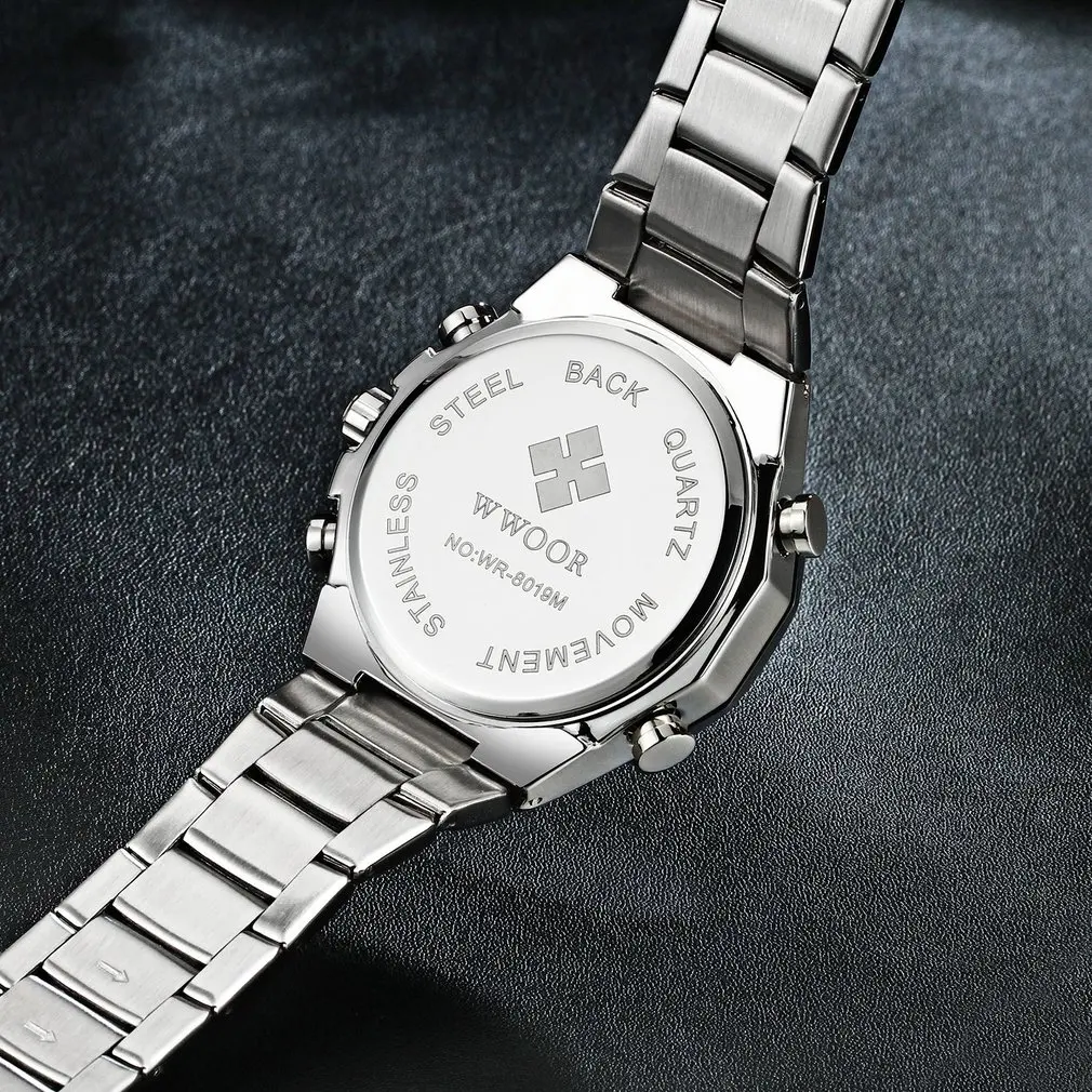 | [해외] WWOOR 남성 듀얼 디스플레이 디지털 석영 아날로그 시계 남성 육군 군사 스틸 손목 시계 Relogio Masculino |