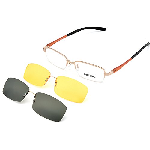 GOCIGA Half Rimless Eyewear Frame Magnetic Sunglasses Clip and Night Vision Clip for Driving