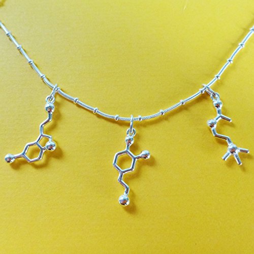-. Title : Creativity - Dopamine Serotonin Acetylcholine - Molecule Necklace in sterling silver