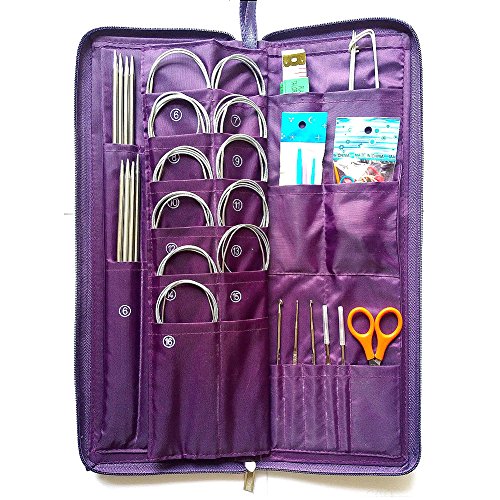 MAYMII 104 Pcs Knitting Kit Stainless Steel Knit Needles Straight+circular Needles+crochet Hook Needlework Hand Tool with Pu Bag