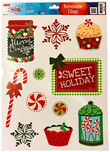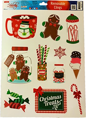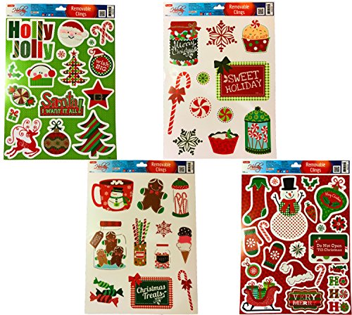 Christmas Static Removable Window Cling Decorations- 2 Large Sheet Sets Featuring Gingerbread Man, Snowmen, Santa, Treats and More (Set Of All 4)
