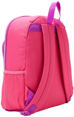 16" x 12" x 5" 640 denier polyester, Sequin & PVC Large front zipper pocket Padded straps Large main compartment