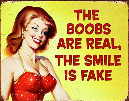 The Boobs are Real The Smile is Fake Tin Sign 13 x 16in