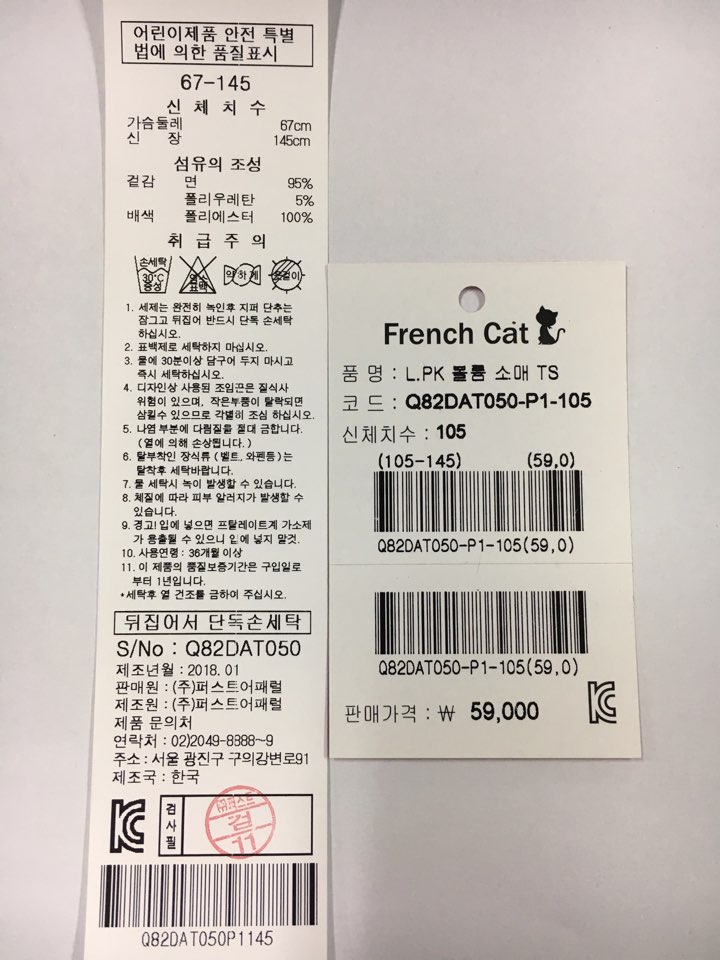 제조자 : 퍼스트어패럴