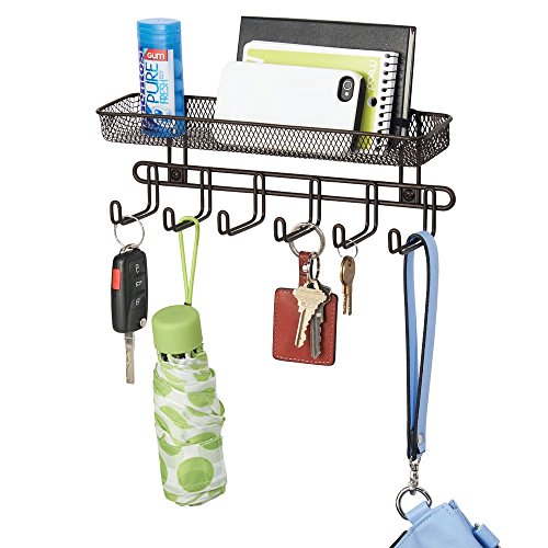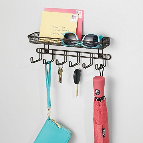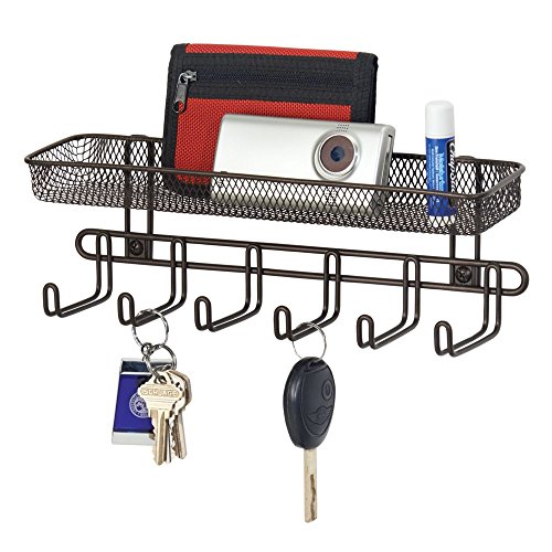 InterDesign Classico Wall Mount Entryway Organizer for Keys, Hats, Wallets, Clutch Purses, Cell Phones, Sunglasses - 11", Bronze