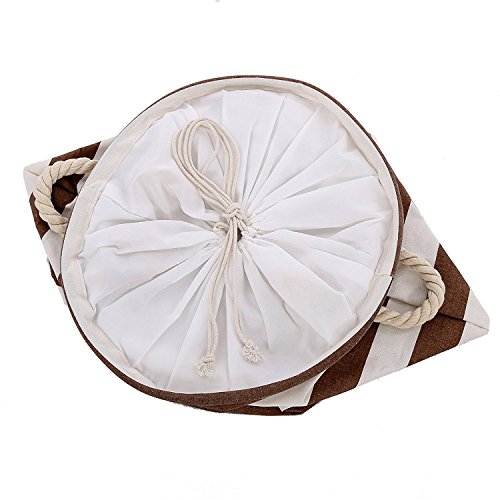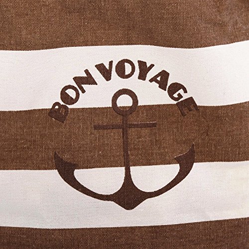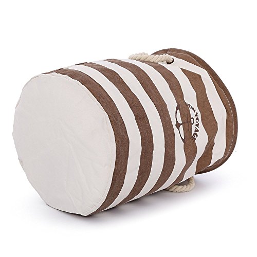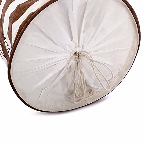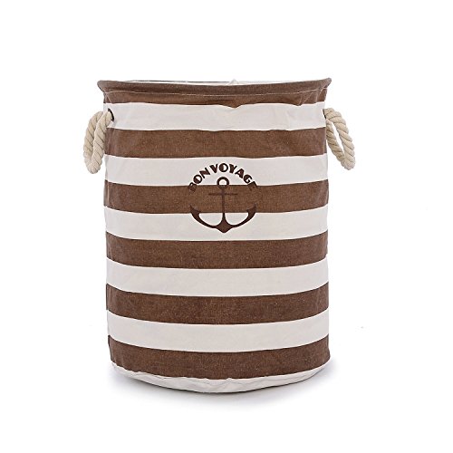 Artextile Naval Style Stripe Laundry Hamper Nautical Round Cotton Line Storage Bag with Handle Kids Storage Bin Office Organizer ,Coffee,13.7 x 17.7 Inch
