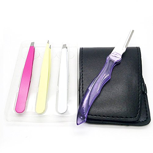 - Eyebrow Tweezers Set: Slant, straight ,pointed tweezers and eyebrow shaper.