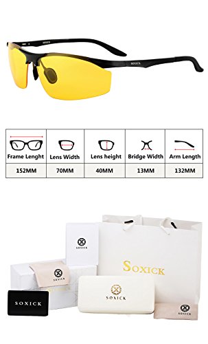 -. Brand : SOXICK -. Department : unisex-adult -. Feature : ❺【 GERMAN MILITARY QUALITY GUARANTEE 】 Please do not hesitate to contact us if you are not satisfied with this product. SOXICK is dedicated to satisfy our esteemed customers.Our 30-day return policy and 180-day warranty guarantee the most pleasant shopping experience. / ❻【 BEST LIGHT ENHANCING LENS TINT (Pale Yellow Lenses) 】 - Enhance contrast in low to extremely low light conditions, haze, etc. Some of our customers say Knight Visor glasses combat eye fatigue, reduce drowsy driving at night and maintain your focus on the road. / ❼【 COMFORTABLE TO WEAR 】 : This classy and Fashionable glasses is designed to sit firmly on your face even when you're on high intensity outdoor activities without causing any inconvenience of any form. It's safe to the eyes and doesn't cause you eye fatigue, or eye ache like other substandard brands. -. ProductGroup : Apparel -. ProductTypeName : EYEWEAR -. Title : HD Driving Glasses By SOXICK Anti-Glare Polarized Sunglasses for Night Vision Safety