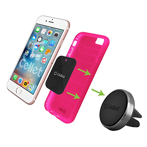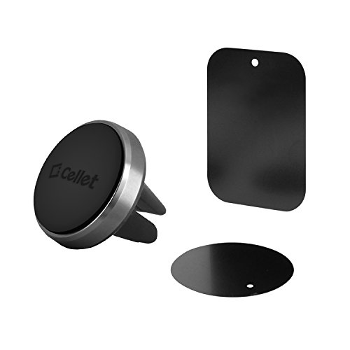 Air Vent Magnetic Car Mount Holder with Quick-Snap Technology- Universal Compatibility including iPhone 7/Plus, 6/Plus, Samsung Galaxy S8/S8 Plus, Note 6/5, Mini Tablets and More- by Cellet- Black