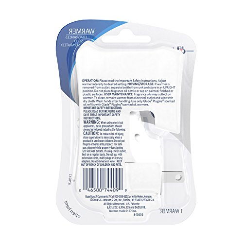 Glade PlugIn Scented Oil Holder Warmer. Fits any Glade PlugIn Scented Oil Warmers. Warmer design fits in any decor. Fills the room with fragrance.