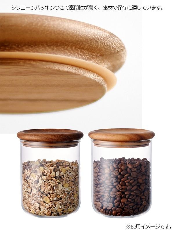 | 耐熱ガラスに温かみのある木蓋を組み合わせたキャニスター。 |