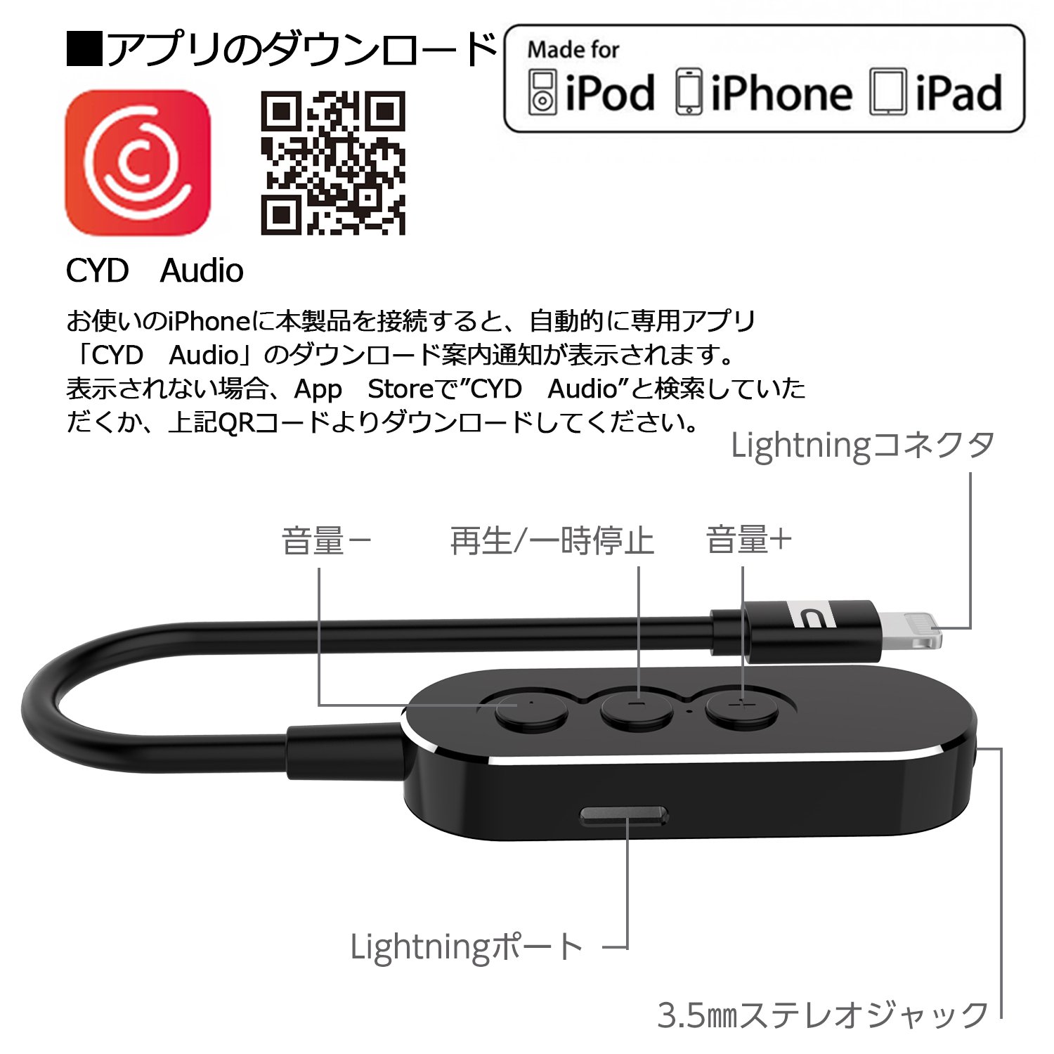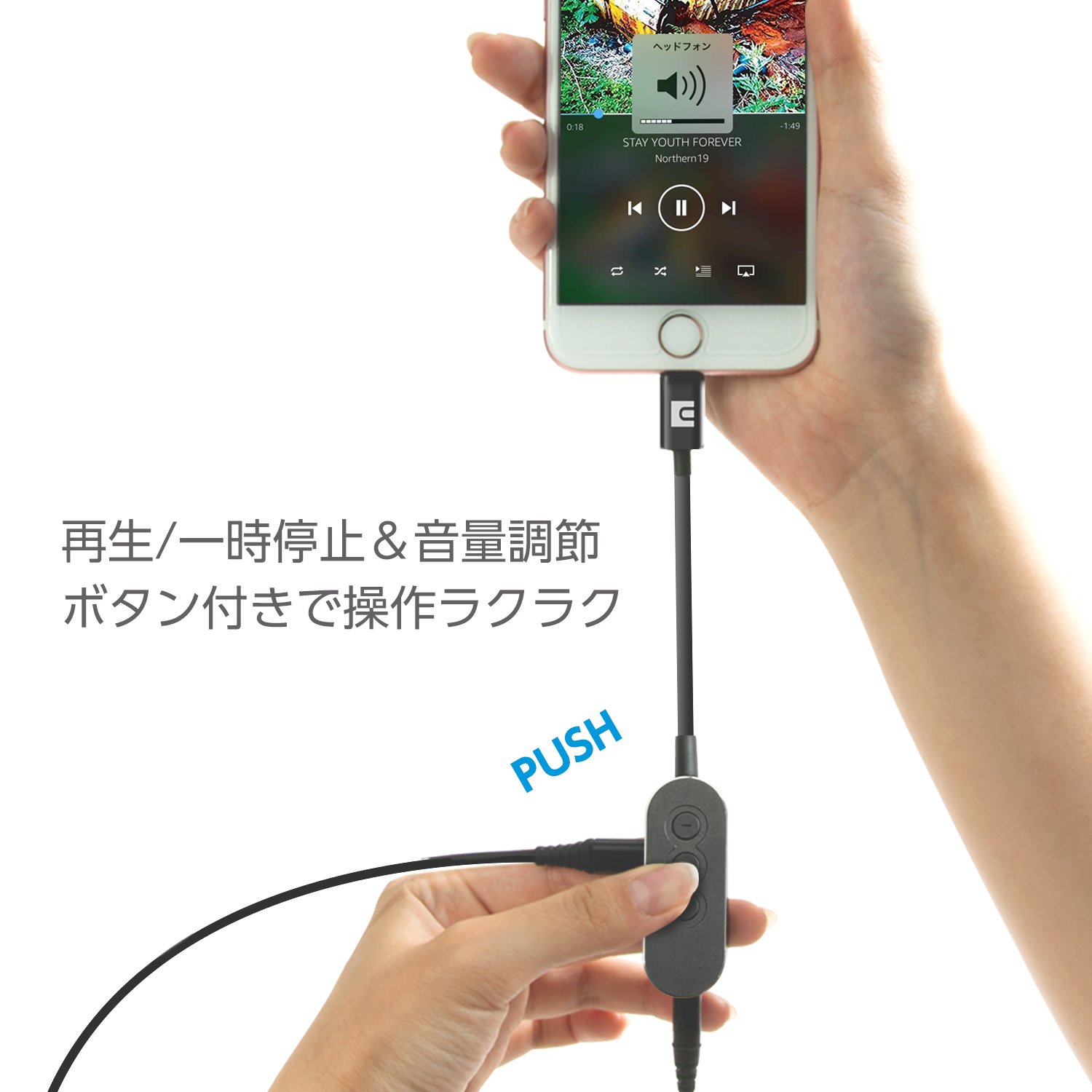 With the iPhone in the pocket, operations such as volume adjustment, pause / playback, etc. can be performed directly from this product.
