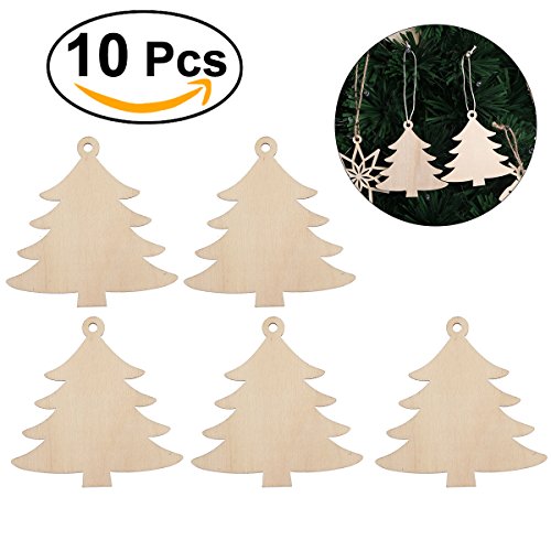 BESTOYARD Wooden Tree Decor Christmas Tree Wooden Hanging Decor Embellishments for Christmas Tree Ornaments DIY Craft 10pcs