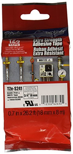 Brother extra strength Tape, Black on White, 18mm (TZeS241) - Retail Packaging