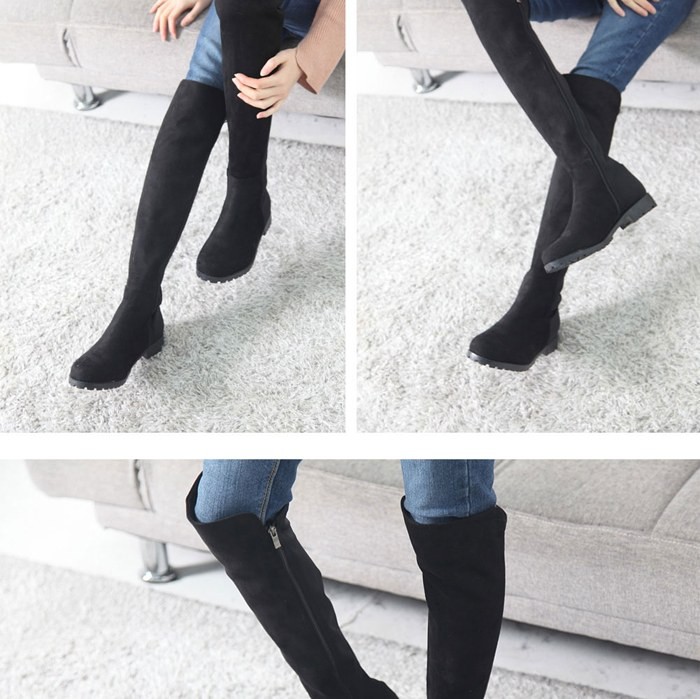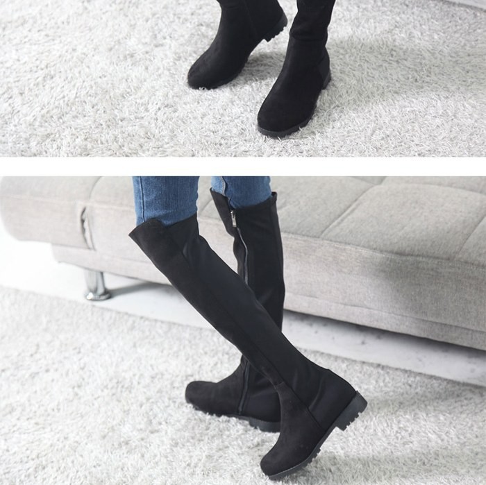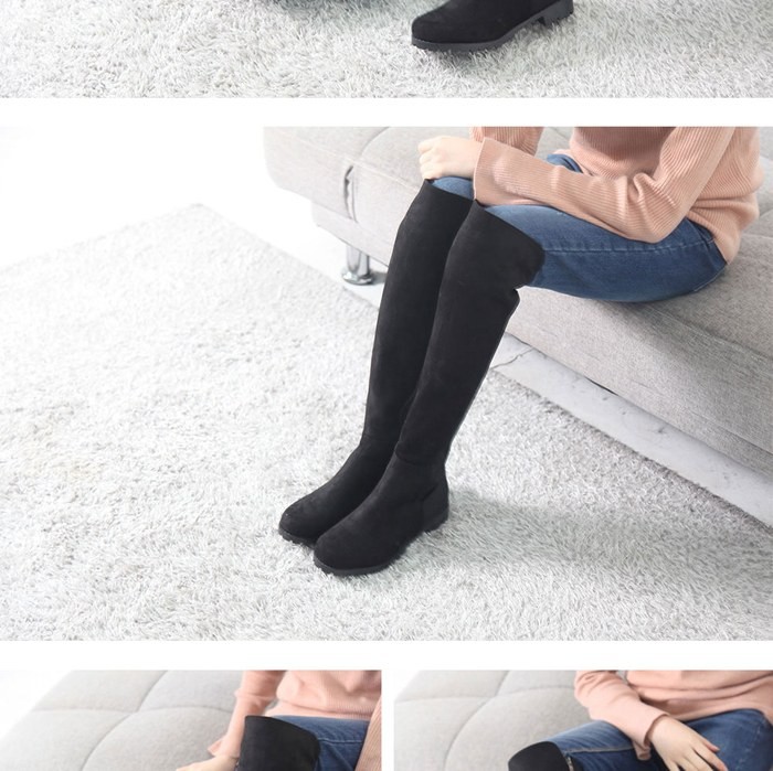 商品名:ロングブーツ レディース ニーハイブーツ ローヒール スエード調 裏起毛 2017 秋 冬 ファッション 靴 婦人靴