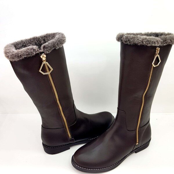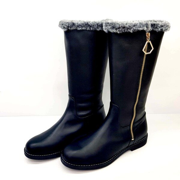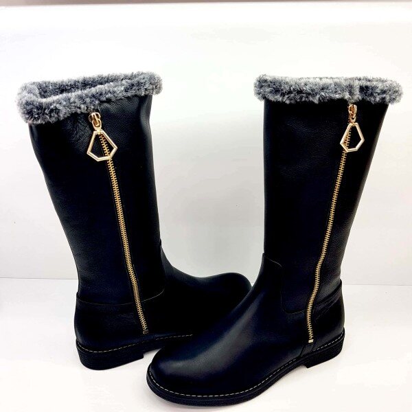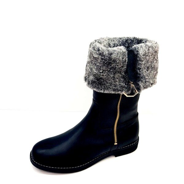 ◆ POINT : 금속 포인트 장식이 데코된 몰드 단화 하프부츠 전체 퍼와 기모내피가 적용되어 보온성이 우수한 제품. 부츠용 MOLD창을 사용하여 착화감이 편안함.