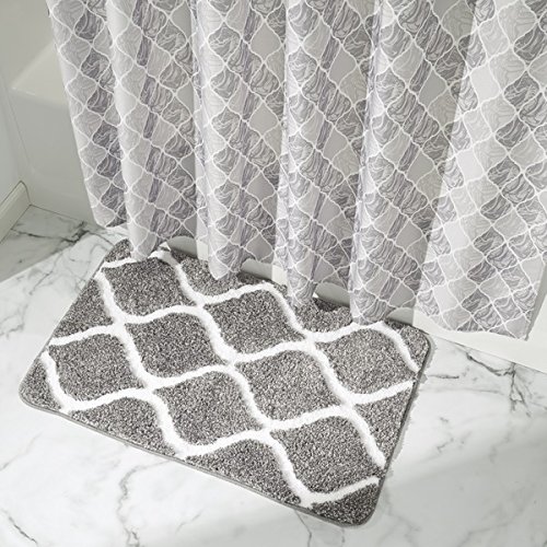 mDesign Moroccan Soft Microfiber Non-Slip Bathroom Mat/Rug for Bathroom, Vanity, Bathtub/Shower, Dorm Room - 34" x 21", Gray