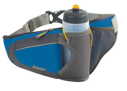 The single-bottle Interval H20 waist pack from Outdoor Products features a handy, angled, foam bottle sleeve and an accessory pocket with a zipper closure.