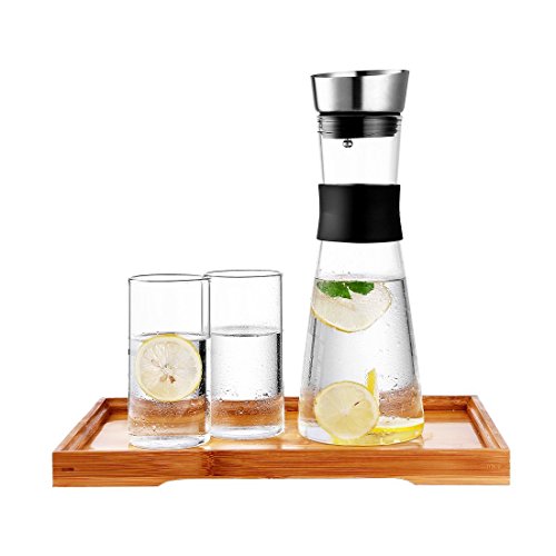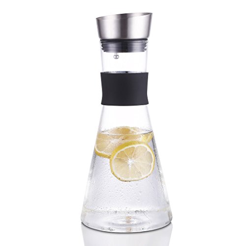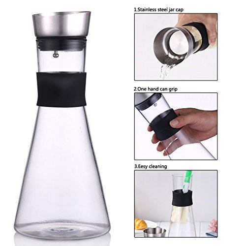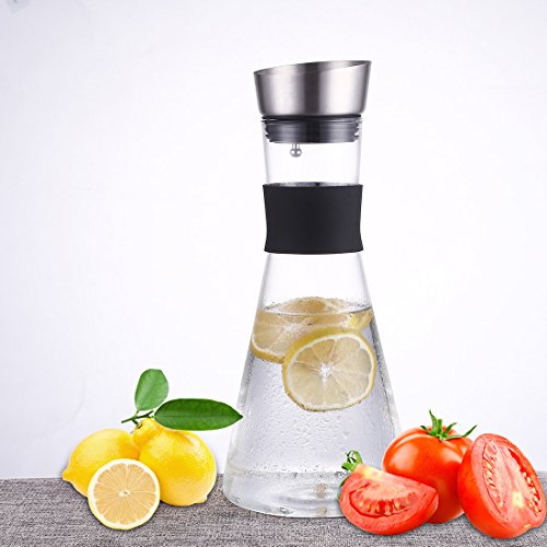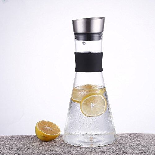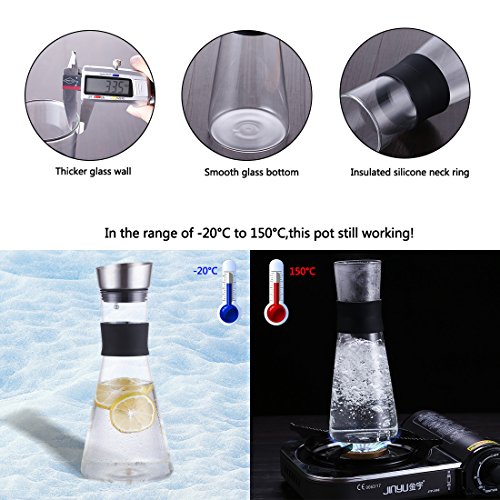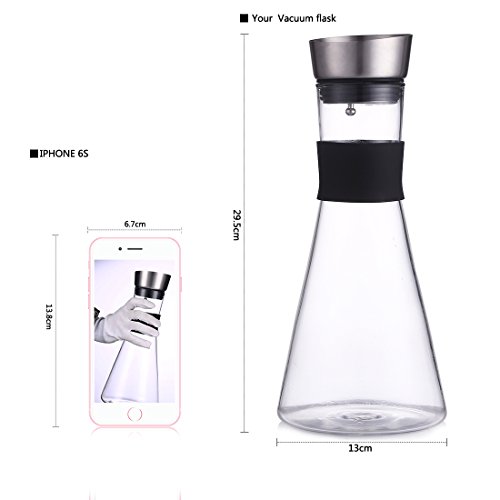 Elegant Design Made with borosilicate glass Glass stays clear and heat resistant Can be used for both hot or cold beverages Dishwasher safe but hand washing is recommended Note: Do not place under direct flame or heating element. Glass pitcher only, glass cups and Serving tray not included. Material:Borosilicate Glass high quality 304 stainless steel -20 ° -150 ° is OK, safe for use. Style:with lid,with tea filter Model:GYBL560001 Color:Clear Capacity:1500ML/50OZ Weigt about:550g Size about:13*28cm This Tea Glass Pitcher allows you to pour your drink without letting fruit into your glass. Made from borosilicate glass which is lighter and stronger than most regular glass. Great with sliced fruits like strawberries, oranges, mango, lime, cranberries, raspberries, ginger, mint, cucumbers, melons, pineapples, etc.!