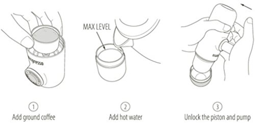 -. Feature : MiniPresso is the most compact espresso machine, capable of making quality espresso. / MiniPresso can make espresso anywhere. / MiniPresso is hand operated, no batteries, no electric power. / MiniPresso has a sleek modern design and intuitive operation.