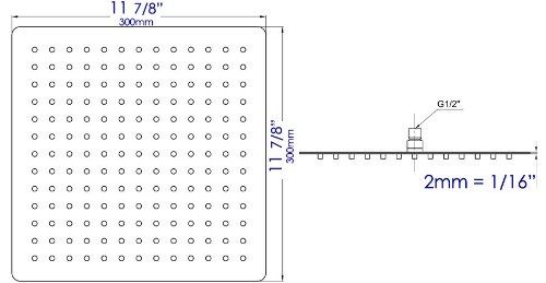 ALFI brand RAIN12S 12-Inch Solid Square Ultra Thin Rain Shower Head, Brushed Stainless Steel