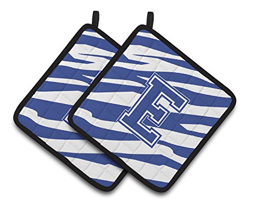 Caroline's Treasures Monogram Initial E Tiger Stripe Blue & White Pair of Pot Holders CJ1034-EPTHD, 7.5HX7.5W, Multicolor