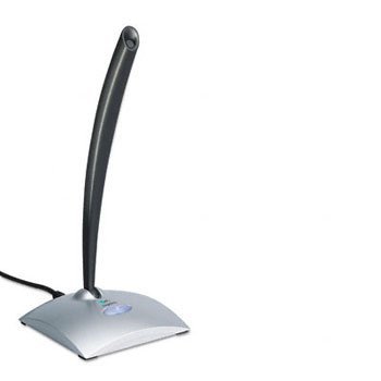 Logitech® USB desktop microphone. Noise-canceling microphone is ideal for voice and video chat, voice command applications and speech recognition. Plug-and-play device offers easy connectivity via USB. Illuminated power switch vividly displays power status. Adjustable mic pivots easily on weighted base and holds preferred position. Global Product Type: Microphones-Computer; Cord Length: 8 in; Maximum Wireless Range: N/A; Mounting: Desktop.Feature