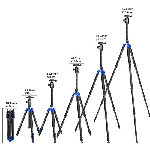 Extends to 65 inches/165 centimeters tall, folds to 18.1 inches/46 centimeters. Carbon Fiber can make it light and portable